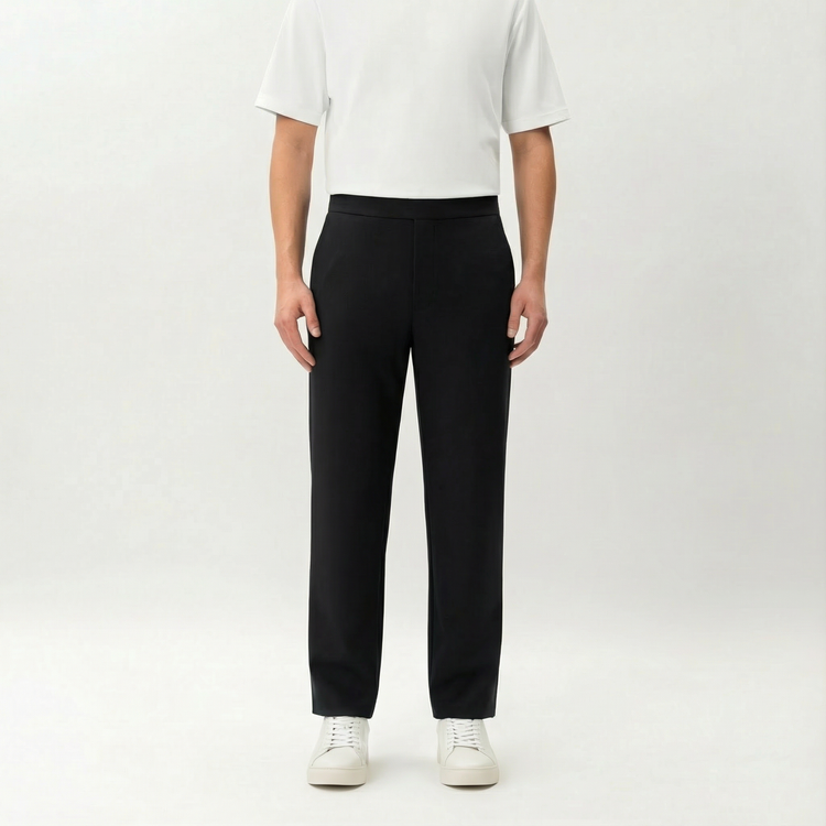 A straight-leg everyday pant designed for comfort with a clean, classic silhouette. The Socrates Classic Pant is made from a matte, stretchy Ponte knit and features a relaxed straight fit suitable for daily wear. Designed with an elasticated waistband, hidden zip pocket, slip pockets and a back welt pocket. Ethically produced in our SA8000® certified facilities.