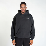 The hoodie features a relaxed oversized fit with a structured drape, balancing comfort and presence. Made from heavy 450 GSM fabric, it holds its shape while remaining soft against the skin, making it suitable year-round.